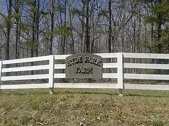 Hyde Park, also known as Old Field, Hyde Farmlands, Hyde Farmlands Academy, Hyde Farms, and Hyde Park Farm, is a historic home and farm complex located at Burkeville, Nottoway County, Virginia. The original section was built between 1762 and 1782, and is a three-story, three-bay, brick vernacular Federal style central passage dwelling. It was enlarged between 1840 and 1860. Between 1906 and 1911, a two-story Greek Revival-inspired brick addition was added to the east gable and a three-story Colonial Revival brick addition to the northwest corner. The farm complex also includes the tenant house, kitchen/wash house, ten log chicken houses (four in ruins), dairy barn, six small outbuildings, and the Fowlkes family cemetery. Also on the property is a large, multi-component archaeological site as well as the ruins of brooder houses, additional farm outbuildings, the tenant farmer house site, the cattle barn ruin, the old mill complex site, and the new mill complex site. During the 1930s and early 1940s, the property provided the opportunity for agriculturally skilled Jewish refugees from Nazi Germany to immigrate to America and expand the farm's productivity.[3]