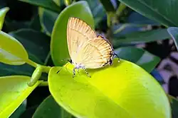 Hypomyrina nomenia, the orange playboy, is a butterfly in the family Lycaenidae. It is found in Nigeria, Cameroon, the Republic of the Congo, Angola, the Central African Republic, the Democratic Republic of the Congo, Uganda, Tanzania and Zambia.[2] The habitat consists of forests.