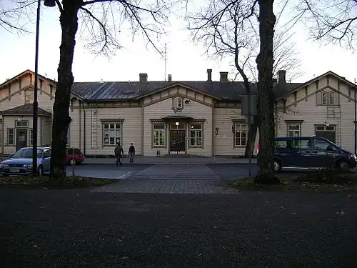 Hyvinkää railway station (Finnish: Hyvinkään rautatieasema, Swedish: Hyvinge järnvägsstation) is located in Hyvinkää, Finland, approximately 60 kilometres (37 mi) north of Helsinki Central railway station. It is situated between the stations of Jokela and Riihimäki.