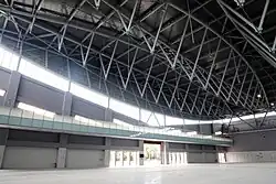 The exhibition hall has a high ceiling design with lightweight, bow-shaped tension truss that spans 81 meters across the hall. The design represents the concept of "Kunsheng" (Chinese: 鯤鯓), a mythical creature that resembles a whale, and often mentioned in folklores of Tainan.[11] The historic ties between "Kunsheng" and Tainan are significant, as several places in Tainan are named after it, such as Nankunshen and Qingkunshen.[12][13]