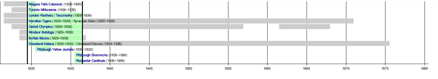 Windsor Bulldogs | 1929–1936 | transferred from CPHL, disbanded when IHL disbanded |