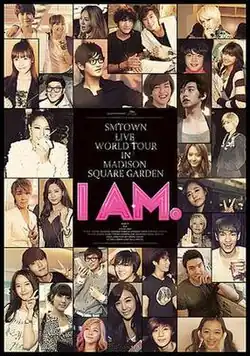I Am - SM Town Live World Tour in Madison Square Garden is a 2012 South Korean documentary film directed by Choi Jin-sung, that is about 32 SM Town K-pop artists on their journey to become the first Asian singers to stage their milestone SMTown Live '10 World Tour concert at Madison Square Garden in New York.[1] The film was originally scheduled for release in South Korea on 10 May 2012, but was postponed to 21 June 2012, due to audio issues.[2]