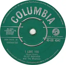 - ^ "Cliff Richard And The Shadows* - I Love You (Vinyl) at Discogs". Discogs.com. 25 November 1960. Retrieved 2014-04-04.