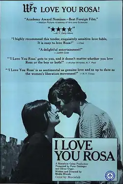 I Love You Rosa (Hebrew: אני אוהב אותך רוזה, romanized: Ani Ohev Otach Roza) is a 1972 Israeli film written and directed by Moshé Mizrahi. The film's plot takes place in the Jewish Quarter of Jerusalem at the beginning of the 20th century. Mizrahi claimed that he wrote the script based on a true event that happened in his family and was passed down through stories over the years.