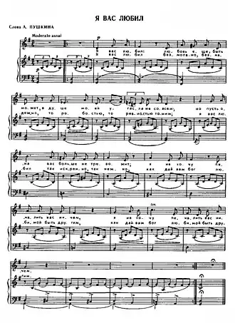 - ^ Irena Grudzińska-Gross Czeslaw Milosz and Joseph Brodsky 2009 Page 123 "Pushkin's “Ia vas liubil” [I loved you] is the quintessential statement of the theme of lost love, after which any other treatment of it seems indecorous."