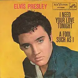 "I Need Your Love Tonight" b/w "(Now And Then There's) A Fool Such As I" was Presley's first single to not receive a 78 RPM pressing in the United States. [4]