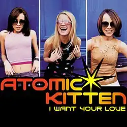 "I Want Your Love" is a song by the English girl group Atomic Kitten, released as the third single from their debut album, Right Now (2000). The song samples the theme to the 1958 film The Big Country,[3] and it was produced, arranged, recorded, and mixed by Damien Mendis at Metropolis Studios in London.