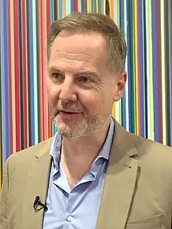 Ian Davenport was born in Sidcup. He studied art at Northwich College of Art and Design, in Cheshire, and then at Goldsmiths College, from where he graduated in 1988.[2] The same year he exhibited in the Freeze exhibition at Surrey Docks organised by Damien Hirst.[3] In 1990 Davenport's first solo show was held at Waddington Galleries and he was included in the British Art Show. In 1991, he was nominated for the annual Turner Prize.[4][5] In 1999, he had a solo exhibition at Dundee Contemporary Arts[6] and was a prizewinner at the John Moores exhibition 21 in Liverpool.[7]