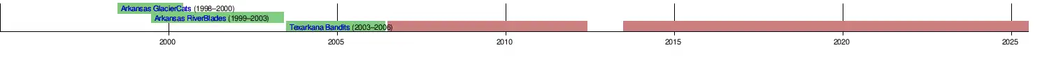 The following year, junior hockey came to Arkansas with the Texarkana Bandits. The team began well, posting a winning season in its first year and then increasing its win total over the following two campaigns. Unfortunately, when a more promising spot opened in the St. Louis market, the team moved despite increased interest from the local community.[3]