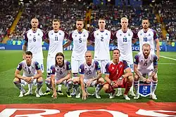 The team enjoyed success in the second half of the 2010s. In the qualifying rounds for the 2014 FIFA World Cup, Iceland reached the playoffs before losing to Croatia. Iceland reached its first major tournament, UEFA Euro 2016, after a qualification campaign which included home and away wins over the Netherlands. After reaching the knockout stages of Euro 2016, Iceland defeated England in the round of 16, advancing to the quarter-finals, where they lost to host nation France 5–2. They became the smallest nation by population ever to clinch a FIFA World Cup berth when they qualified for the 2018 tournament on 9 October 2017.[8] They drew with Argentina in their opening match, but went out in the group stage.[9][10]