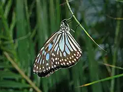 Ideopsis vulgaris, the blue glassy tiger, is a butterfly that belongs to the crows and tigers, that is, the danaid group of the brush-footed butterflies family. In 2023, Thapa and Bhuyan published a paper recording of this species from Dehing Patkai National Park in Assam, India, marking the first documented occurrence in the state and the second record for the country.[2]