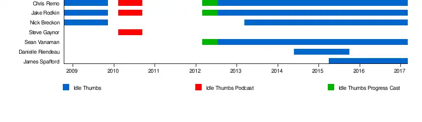 Until May 2018, it published a weekly video game podcast of the same name hosted by various former and current video game journalists and developers including Chris Remo (formerly of Campo Santo and Double Fine Productions), Nick Breckon (formerly of Telltale Games), Jake Rodkin and Sean Vanaman (Valve formerly Campo Santo, and Telltale Games), Danielle Riendeau (Fanbyte.com, formerly Waypoint/VICE Gaming and Polygon), and James Spafford (Double Fine Productions, formerly Media Molecule).