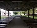 Ilača is the most important Catholic pilgrimage site in the historical region of Syrmia.[7] The Marian Ilača apparitions were reported in 1865, seven years after the famous Lourdes apparitions.[7] Shepard from Ilača Petar Lazin claimed that he saw a water on the middle of the field road although there was no rain, and that once he made a whole the water source started there that haven't stop since that time.[7] At the same night, another villager, young Đuka Ambrušević saw a Virgin Mary with a child in his dream and she told him that it is her water spring, that he need to build a small wall around it so that stock don't drink from it.[7] When he woke up he saw the image from his dream next to his bed.[7] Initially church authorities tried to prevent congregation from pilgrimage.[7] Later it was permitted by progressive bishop Josip Juraj Strossmayer.[8] In 1866 small chapel was built next to the spring, and in 1870 construction of a church started.[7] Ilača became target of pilgrimage for Roman Catholic Croats, Germans, Hungarians as well as for Eastern-rite Catholic Pannonian Rusyns.[7] During the Croatian War of Independence church was destroyed by tanks of Yugoslav People's Army active in the area of self-proclaimed Serbian Autonomous Oblast of SAO Eastern Slavonia, Baranja and Western Syrmia.[7] Once the UNTAES finished its peace mission in the Eastern Slavonia, Baranja and Western Syrmia in 1998 pilgrimage started once again to take place.[7]