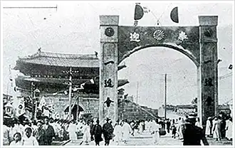 The Iljinhoe (一進會; 일진회) was a nationwide organization in Korea formed on August 8, 1904. A Japanese record states the number of party members was about 800,000,[1] but another survey record by the Japanese Resident-General of Korea in 1910 shows the number was about 90,000.[2] After seeing the failure of Korea's isolationism, the party claimed that Korea could not develop capitalism on its own, and demanded a merger with the Empire of Japan. Song Byeong-jun (송병준), the leader of the group and a high-ranking official in the Korean government before the Japan-Korea Annexation Treaty actively pushed ahead the annexation and received a title of nobility from the Japanese government in 1920.[3] The group was disbanded on September 26, 1910, a month after the Japan-Korea Annexation Treaty.[4] Song Byeong-jun is considered a traitor in modern day Korea.[3]
