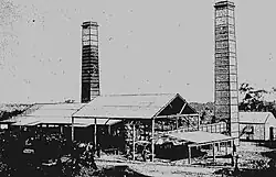 By May 1915, the price of copper had risen, probably due to wartime demand, and there was the prospect of the mine reopening.[42] In 1916, the old Queen Bee Copper Mine was reborn as the Mount Illewong Mine. The mine was dewatered, after around four years of inactivity. A new concentrator plant replaced the on-site smelting of the previous operations; the copper concentrate was shipped to a copper smelter and refinery at Port Kembla.[43][44][45] This revival of the mine—it employed only around twenty men in February 1917[46]—failed to last. Operations were "temporarily curtailed", in October 1917, with the reason being that Port Kembla already had too much ore.[47] Six men later worked the mine as tributers—supplying the C.S.A. mine's smelter at Elouera, north of Cobar township—but large scale mining there was over. Around March 1919, the equipment was stripped from the old Queen Bee Mine.[48]