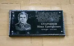 Colonel Ilya Grigoryevich Starinov (Russian: Илья Григорьевич Старинов; 2 August [O.S. 20 July] 1900, village of Voynovo, today's Oryol Oblast – 18 November 2000) was a Soviet military officer, the most famous Soviet saboteur.