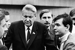 Ilya Zaslavskiy, as one of the leaders of Democratic Russia, positioned himself clearly as anti-communist and pro-Yeltsin, who had been elected democratically (see also section Political positions). During the coup attempt, Zaslavskiy joined the defenders of the White House, together with other celebrities like cellist Mstislav Rostropovich.[24]