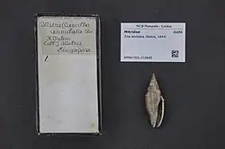 - ^ Sowerby, G. B. II. (1874). Monograph of the genus Mitra. In G. B. Sowerby II (ed.), Thesaurus conchyliorum, or monographs of genera of shells. Vol. 4 (31-32): 1–46, pls 352–379. London, privately published