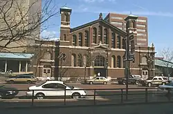 The Indianapolis City Market is a historic public market located in Indianapolis, Indiana. It was founded in 1821 and officially opened in its current facility in 1886. The market building is a one-story, rectangular brick building trimmed in limestone. It has a front gable center section flanked by square towers.[2][3] While it was originally a farmers market, it is now a food hall. The site was listed on the National Register of Historic Places in 1974.[1]