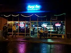 With the influx of students at the end of the Vietnam War, Ohio State enrollment went up to almost 50,000 students. This changed the businesses. By 1978, the shops included three restaurants, two new pharmacies, two realtors, a Salvation Army Thrift Store, and a coffee shop, as well as new grocery, sporting goods, and appliance stores.[12] In the early 1980s, Suzi-Cue Pool Hall, a local dive bar and billiards hall, moved into the complex. By 1990, Both Suzi-Cue and the Salvation Army remained, but the rest of the businesses had moved out, being replaced by Soussy Market, C&M Towing, a hair salon, and Christian Embassy.[13]