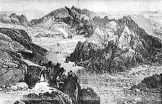 Although the American policy of Indian removal to force indigenous peoples off of their homelands had begun much earlier in the United States in 1813, it was still being implemented as late as 1903 in Southern California.[54] The last native removal in U.S. history occurred in what has been referred to as the Cupeño trail of tears, when the people were forced off of their homeland by white settlers, who sought ownership of what is now Warner Springs. The people were forced to move 75 miles from their home village of Cupa to Pala, California.[55] The forced removal under threat of violence also included Luiseño and Kumeyaay villages in the area.[55]