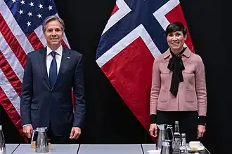 Søreide met with U. S. Secretary of State Antony Blinken in May 2021 in Reykjavík, Iceland, to discuss the situation at the Gaza strip. Following the meeting, Søreide explained that Blinken had stressed the expectation of a deescalation and path to a cease fire. Søreide described it as "the only thing to prevent this from escalating out of control".[26]