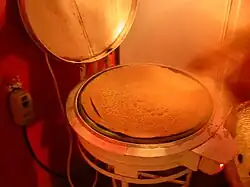 Traditional clay stoves can be inefficient in that they consume large amounts of firewood and produce a lot of smoke, creating household pollution and making them dangerous to use around children.[11] In 2003, an Eritrean research group designed a stove for cooking injera and other foods that uses more easily available fuel, such as twigs instead of large branches, crop residues and dung, locally called kubet.[12] Several parts of this new stove are made in the central cities of Ethiopia and Eritrea, while other parts are moulded from clay by women in local areas.[12]