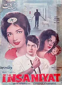Insaniyat (transl. humanity) is a 1967 Pakistani Urdu language black-and-white film produced by A. Hameed, directed by Shabab Kiranvi who also wrote the screenplay. The film starred Waheed Murad, Zeba, Tariq Aziz, Firdous and Nanna.[1] The film revolves around a doctor, who has to treat the husband of his ex beloved, suffering from cancer.[2]