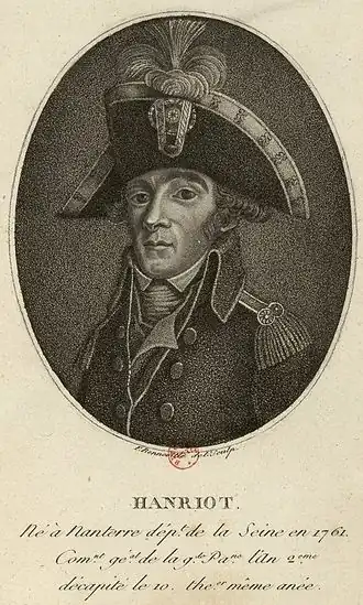 On the same day, several new members were added to the Committee of Public Safety: Louis Antoine de Saint-Just, Georges Couthon, and Hérault de Seychelles.[15] The Department of Paris gave its support to the movement, and in name of the sections François Hanriot was appointed "Commandant-General" of the Parisian National Guard by the vice-president of the convention. At 3 p.m., the tocsin in the Notre-Dame was rung, in the streets barriers were erected and the city gates were closed.[16] The insurrection was directed by the committee at the Évêché (the Bishop's Palace Committee).