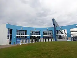 The International Antarctic Centre was built by the Christchurch Airport company, after agreements were reached between the airport, the New Zealand DSIR Antarctic Division and the United States National Science Foundation. In 1990, after the plans for the centre were approved, the New Zealand Government provided a grant for international promotional work to raise the profile of Christchurch as an Antarctic gateway city, with the International Antarctic Centre as a focus.[5] The centre was developed in two stages. The first stage opened in September 1990, providing an office and warehouse storage facility for the Antarctic programmes of New Zealand, the United States and Italy.[3]: 89 The second stage of the development was the Antarctic visitor centre, built as a tourism venture in 1992. The architect for the development was Barry Dacombe of Warren & Mahoney, and the main contractor was Armitage Williams Construction. Dacombe describes the visitor centre building as: "a series of fan shaped solids of varying height appearing as large wedges of ice squeezed outwards from the Antarctic continent".[6][7]