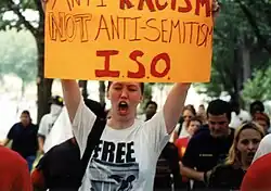 In 2001, the ISO was expelled from the IST after a dispute with the British SWP. This dispute was framed by the SWP as a critique of the ISO's conservative approach to the anti-globalization movement.[18] The ISO disputed this claim and criticized the SWP for maintaining what the ISO viewed as an exaggerated perspective for the 1990s,[19] which the SWP characterized as "the 1930s in slow motion".[20] However, the organization continued to grow. Juan Cruz Ferre writes, "The ISO famously managed to thrive during the worst years of neoliberalism and working-class retreat."[21]