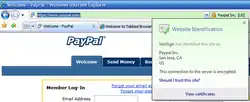 - IE7 includes support for Extended Validation Certificates (EV). When sites present an EV certificate the address bar is shown in green.