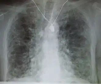 A chest X-ray demonstrating pulmonary fibrosis due to amiodarone