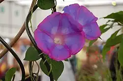 Ipomoea indica[3] is a species of flowering plant in the family Convolvulaceae, known by several common names, including blue morning glory, oceanblue morning glory, koali awa, and blue dawn flower. It bears heart-shaped or three-lobed leaves and purple or blue funnel-shaped flowers 6–8 cm (2–3 in) in diameter, from spring to autumn. The flowers produced by the plant are hermaphroditic. This plant has gained the Royal Horticultural Society's Award of Garden Merit.[4][5]