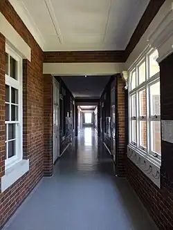 - ^ and 75D-18-2, 16010731. The classrooms were 21 ft (6.4 m) wide on the first floor, widening to 21 ft 9 in (6.63 m) on the second floor. The end classrooms were 20 ft 6 in (6.25 m) long and the three middle classrooms were each 19 ft (5.8 m) long.