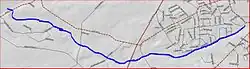 Its source is at 40°24′57″N 74°25′00″W / 40.41583°N 74.41667°W,[1] near the intersection of Cranbury Road and Rues Lane in east central East Brunswick. It crosses Fern Road, then runs through the East Brunswick Community Park and the Ireland Brook County Park. Crossing Dunhams Corner Road and the New Jersey Turnpike, it continues running through the long Ireland Brook County Park. It crosses Fresh Ponds Road and Riva Avenue, and drains into the Farrington Lake, a dammed section of the Lawrence Brook, at 40°25′14″N 74°29′07″W / 40.42056°N 74.48528°W.[1]