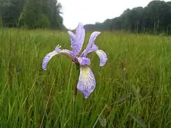 Iris prismatica is a perennial herb spreading by means of rhizomes that are close to the surface of the soil. Flowering stalks can reach a height of 80 cm. Leaves are long and narrow, up to 60 cm long but rarely more than 5 mm across. It has 2–3 blooms in May.[2] Flowers are pale blue to blue-violet.[6][7][8][9][10] It tends to grow in swampy,[2] wet conditions,[3] and within the United States, it is currently state listed as 'threatened' in Maine, New Hampshire, New York, and Tennessee, and state listed as 'endangered' in Maryland and Pennsylvania.[11] It is cold hardy to USDA Zone 3.[2]