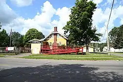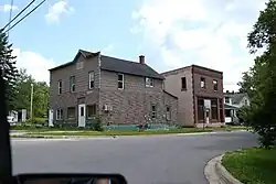 The Falls Location Historic District is collection of seven log houses and associated outbuildings, located at the Paint River near downtown Crystal Falls.[17] The settlement developed between 1880 and 1900, likely in part due to the opening of the nearby Crystal Falls Mine. All of the houses in the Falls Location are built from logs, and were originally single- or two-room structures of one or 1½ stories. Several have been enlarged, and three were clapboarded at an early time. Two others have modern siding. The outbuildings are all of frame construction except for one log shed. In spite of these cosmetic changes, the Falls Location Historic District is significant as a cohesive late 19th-century settlement of log dwellings, one of only three left in Iron County.[17]