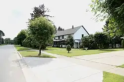 The Ernest Diele House is a two-story American foursquare house located at 213 Marquette Avenue.[16] It was built for Ernest Diele, the head mason of the Corrigan-McInney Mining Company. The rectangular, two-story, hipped roof, frame structure is set in an ample, tree-shaded lot. The simple, clapboarded house with hip-roof dormers and a glassed-in front porch is typical of the plain but substantial houses which managers and skilled tradesmen working in the local mining industry lived in.[16]