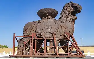 The Iron Lion of Cangzhou (Chinese: 铁狮子; pinyin: Tiě Shīzi), also known as the "Sea Guard Howler", is a cast iron sculpture located in Cangzhou City, in Hebei Province, China, about 180 km (110 mi) southwest of Beijing. Cast in the Later Zhou dynasty in 953, the iron lion is the largest known and oldest surviving iron-cast artwork in China. It is considered one of the Four Treasures of Hebei.[1]