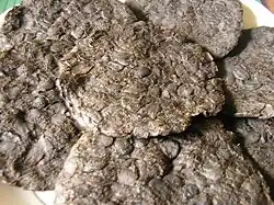 Irú (Yoruba) or Daddawa (Hausa) [1]or Eware (Edo) or Sumbala (Bambara) or Narghi (Fula) is a type of fermented and processed locust beans (Parkia biglobosa) used as a condiment in cooking.[2] It is similar to ogiri and douchi. It is popular throughout West African cuisine. It is used in cooking traditional soups like egusi soup, okro soup (ILA), Ewedu soup, and ogbono soup.[3]