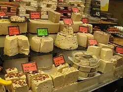 Tahina is often used as a dressing for falafel,[31] serves as a cooking sauce for meat and fish, and forms the basis of sweets such as halva.[32]