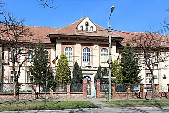 In 1936, the Ministry of Cults and Public Instruction banned religious education for Jewish students in state school buildings.[6] On 29 August 1940, the Gigurtu Cabinet limited the access of Jewish students to high schools and universities to 6%. The decree-law of 11 October 1940 excluded Jews from all state schools, but left open the possibility of establishing their own primary and secondary schools, with exclusively Jewish teachers and students.[10][11] Under these conditions, the Israelite High School in Timișoara continued its activity during the Antonescu regime, receiving students excluded from other schools.[4] But in the autumn of 1940, the high school building was requisitioned. In 1941, the German military hospital was installed upstairs. In 1942, the entire high school was evacuated, the building becoming the headquarters of the Timișoara Police Headquarters. The courses of the boys' high school continued in the premises of the Israelite Primary School in Fabric (1 Ion Luca Caragiale Street) and in the premises of the Fabric Synagogue, of the commercial high school in the yard of the Fabric Synagogue, and of the girls' gymnasium in the community premises (5 Gheorghe Lazăr Street) or in different private homes.[5] Some of the students, born in 1925, were sent to work detachments as early as April 1943. However, they did not drop out of school, but continued to attend classes in the hours after work. The school, in turn, facilitated this by the fact that the lessons were scheduled after 2 p.m.[4]