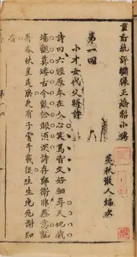 Yu Jiao Li is one of the best-known caizi jiaren novels,[1] together with Ping Shan Leng Yan, and Haoqiu zhuan.[2] The English version published by Hunt and Clarke of London in 1827 is an adaptation of Jean-Pierre Abel-Rémusat's French translation.[3]