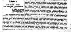 - ^ Jurčič, Josip (1873). Ivan Erazem Tatenbah [Ivan Erazem Tatenbah: original historical novel from the 17th century of Slovenian history] (in Slovenian). Ljubljana: Narodna tiskarna. p. 168.