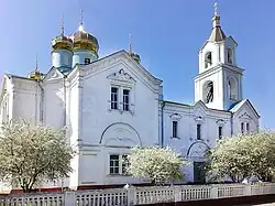 In 1893, a chapel dedicated to the family of Emperor Alexander III ("in memory of the miraculous rescue on October 17, 1887," during a train accident) was built in the churchyard, facing the street.