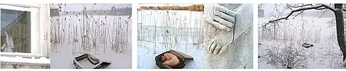 Perception of Phenomenal Soundlessness (2006) is an on-site work produced outdoors during her residency at the Cable Factory in Helsinki, Finland. Performative acts were carried out while Ma wandered in the frosty landscape. She dragged an empty suitcase with broken wheels to the lakeside, filled it with her own curled up, unclothed body and photographed herself; she gathered tree sticks from grave land and rearranged them on the ice; and she stuffed ice into a man-shaped cloth doll and hanged it on a tree. Images and documentation of the work were presented in the exhibition entitled Stained, the eclipsed pattern at Uma-g Gallery, Hong Kong in 2006.[26]
