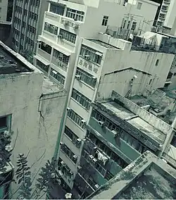 The Wayward Cloud (2006) follows a similar methodology. Originally an on-site work created when Ma lived in Wan Chai on the Hong Kong Island, It is about the view seen looks back at the seer, an idea already explored in Far Away, So Close (2003). In the artist's word, "I loved to look from my window and see many old buildings. Then I wanted to search for the view that looked back at my home, so I went to the opposite building, and asked the owner if I could pay her a little bit for permission to go to the top and see back to my home."[27] A photograph depicting a naked figure holding a cotton wool cloud on a rooftop and another photograph of the rooftop without the figure taken at the scene were included in the exhibition Perhaps, Solitude at the studio of the late Jerry Kwan, teacher of Ivy Ma[28] in Fotan in 2007.