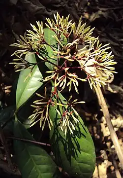 Ixora nigricans, or black ixora, is a plant growing up to a height of 5 metres (16 ft). It is found as common undergrowth in evergreen forests to dry evergreen forests up to 1,900 m (6,230 ft).[2] Black ixora is found in throughout the forests of the Western Ghats of India.[3]