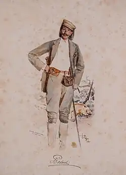 Józef Mikołaj Kazimierz Marian Alfred Jakub Potocki (8 September 1862 – 25 August 1922) was a Polish nobleman, hunter, traveller and writer. A collector of books, paintings and hunting trophies, he also bred Arabian horses on his Pilawin estate and worked on reintroducing European bison into Ukraine on his hunting estate.